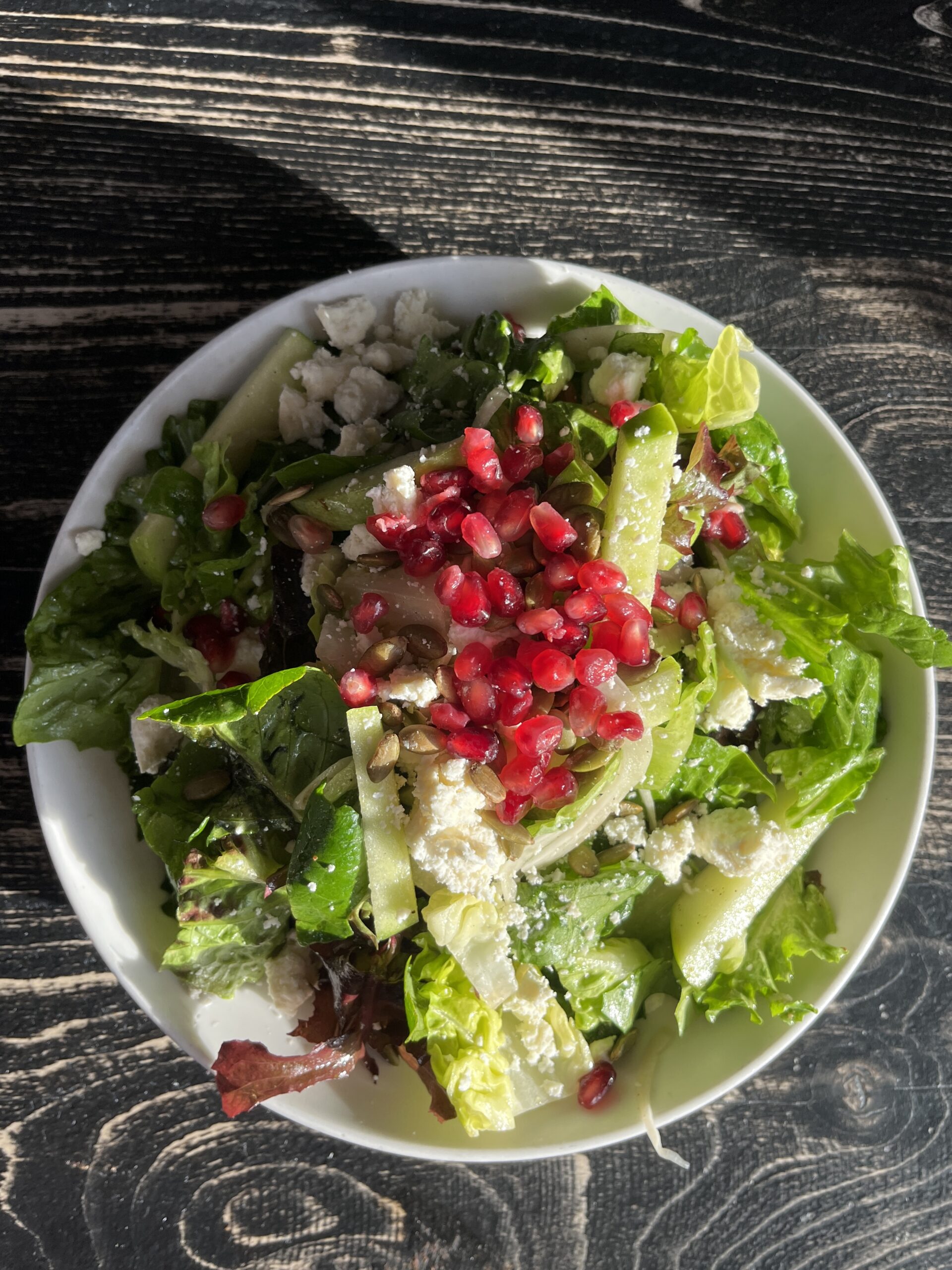 Star Route Farms Mixed Greens, Granny Smith Apples, Pickled Fennel, Ricotta Salata, Pepitas, Pomegranate Seeds, Red Wine Vinaigrette